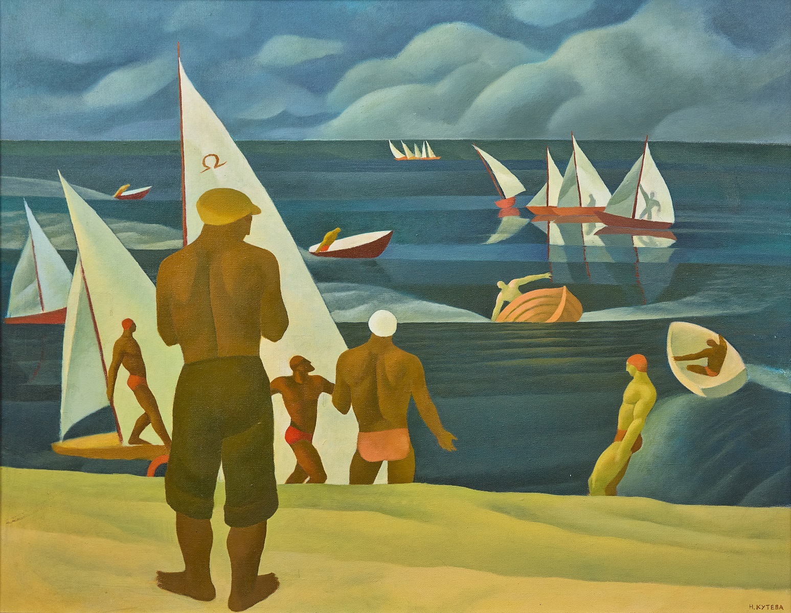 Gathered from various collections, her paintings in "Places and Rituals" reveal an artist who not only recreates her sense of nature and atmosphere, but also manages to depict melody. Whether she paints figures on the seashore or on the hills of the Rhodope Mountains, lazarki, scenes from the life of St. Nicholas, fire-fighters, saints descending from the walls, or women with baby carriages in the park - they are all depicted as participating in their own, strange, ecstatic and humble ritual.