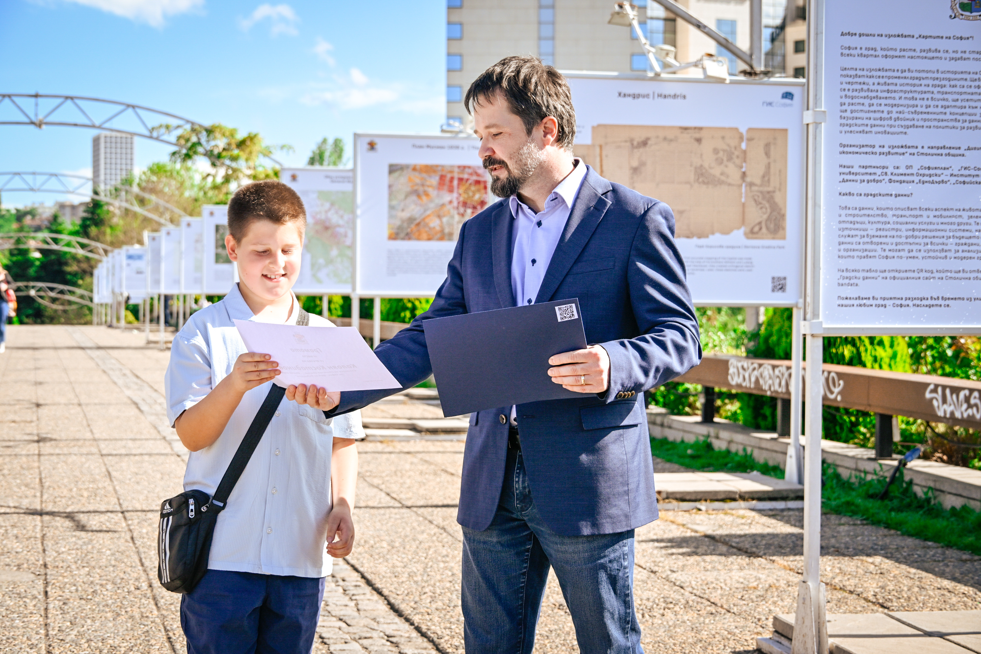 Заместник-кметът отличи и тримата победители в конкурса „Моята карта на София – град на бъдещето“. „Целта на конкурса е да чуем какво си представят и за какво мечтаят децата за нашия град. Почти всички говорят за една по-зелена София – такава, каквато всички искаме“ – подчерта Гойчев.