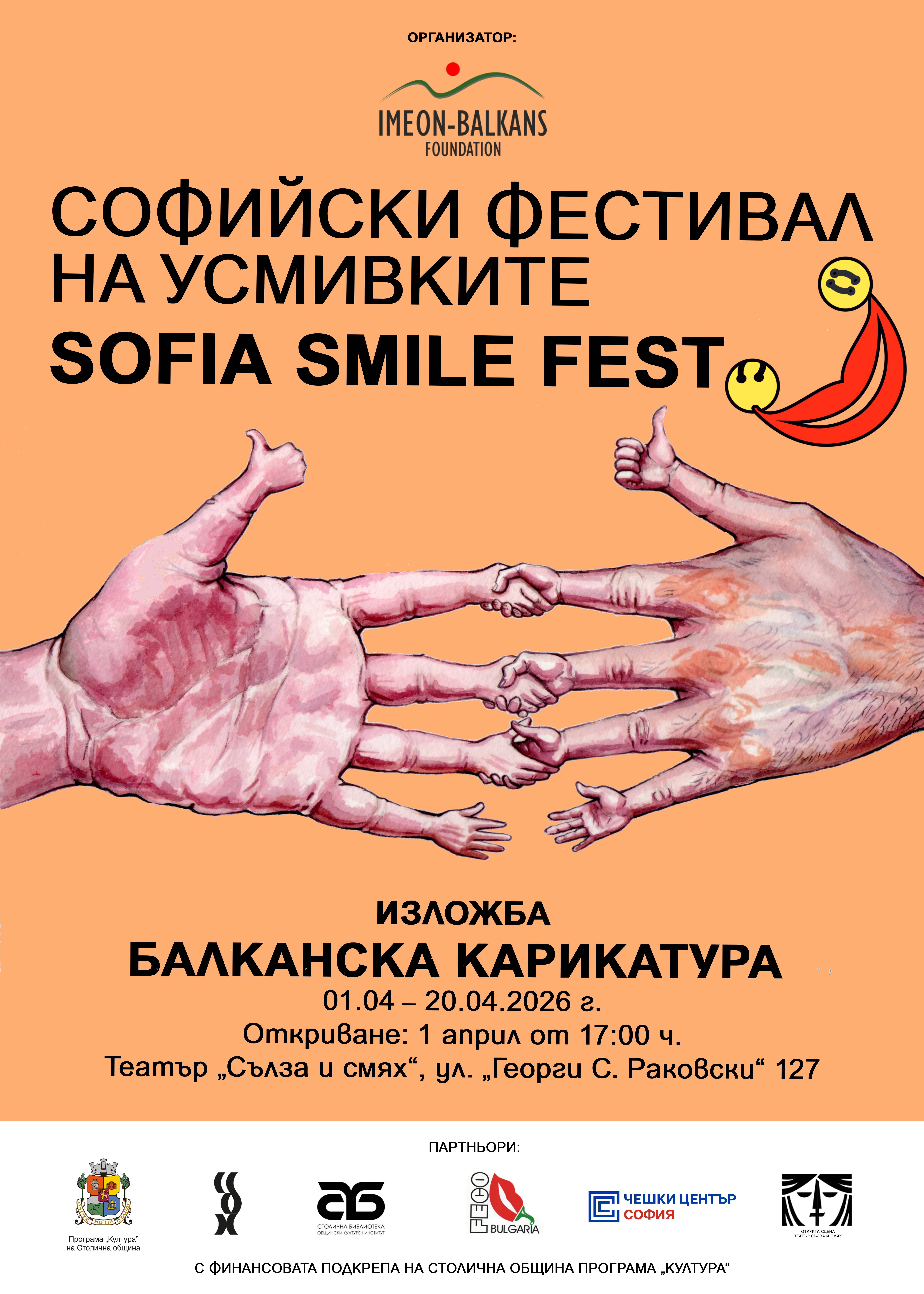 ​​​​​​На 1 април – по повод Международния ден на хумора и шегата – в София ще се проведе първото издание на "Софийски фестивал на усмивките" – културна инициатива на фондация "Имеон – Балкани", реализирана с финансовата подкрепа на Столичната община – Програма "Култура".