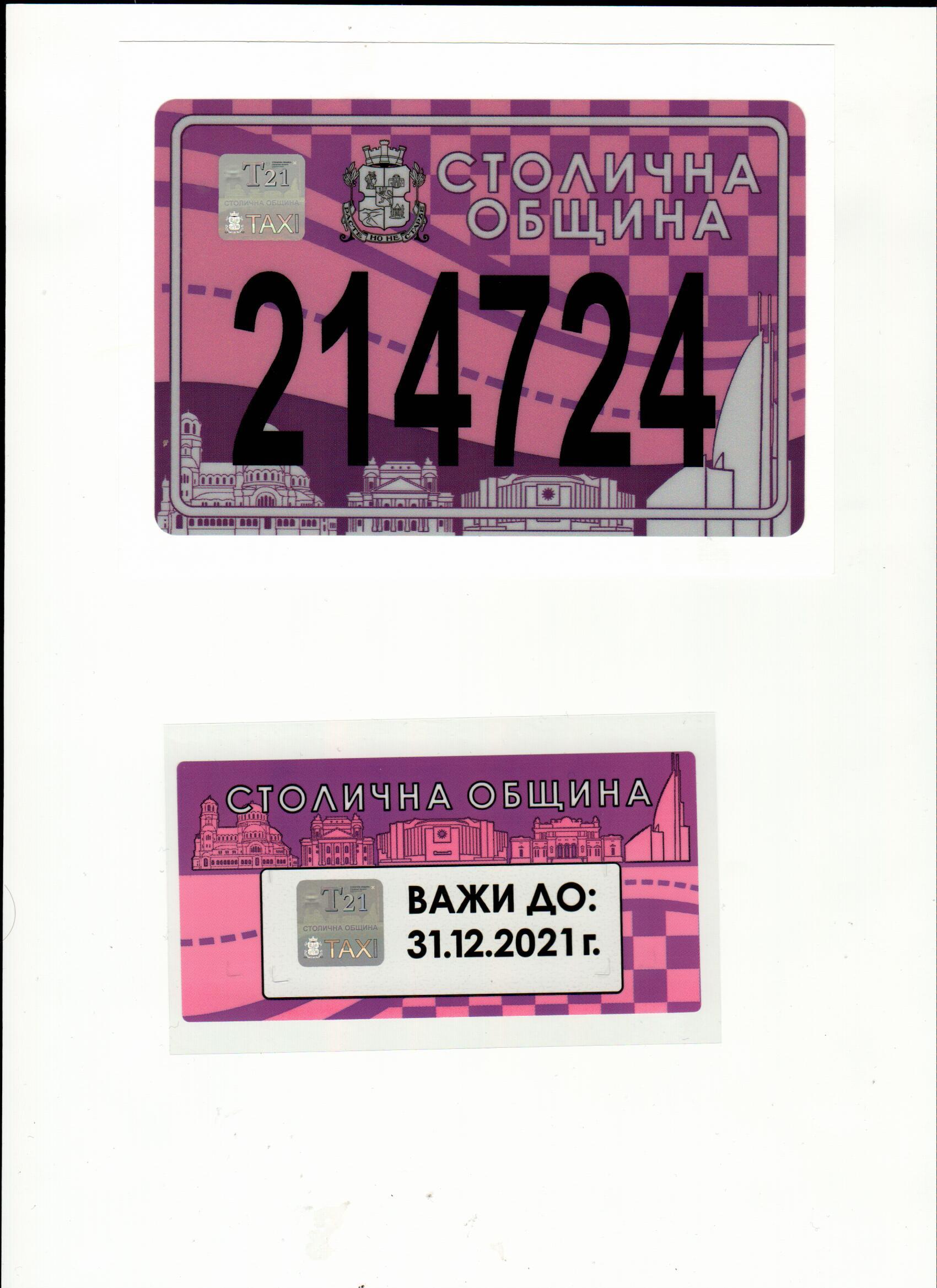Валидни стикери за таксиметров превоз на пътници от 01.01.2021 до 31.12.2021 година